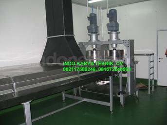 COOLING TUNNEL CHOCORICE Spesifikasi : 1. Dimensi : Lebar = 1450mm, Panjang = 13640mm, Tinggi = 1000mm 2. Matrial : - Motor penggerak : Gear motor 7, 5 Hp Ex Taiwan ratio 40 - Frame : pipa besi hollow 40 x 80 - Base conveyor : plat stainless tebal 2mm - Belt conveyor : Polyurethane white ( food grade ) - Cover u/ cooling tunnel : plat stainless tebal 1, 5mm - Isolator cooling tunnel : polyurethane tebal 50mm - Transmisi belt : driven roller & return roller - Transmisi motor penggerak : Rantai RS60 & sprocket RS60 - Box panel : Standart panel coumplit dengan push & botton & inverter Thosiba